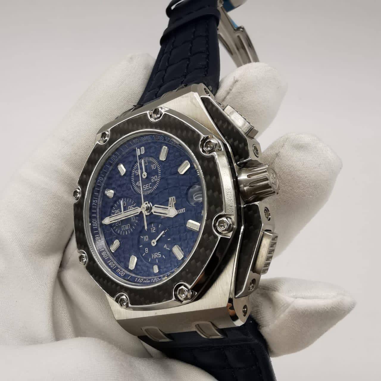 Довольно-таки стильные наручные часы, разработанные ведущей мировой часовой компанией. Корпус изготовлен из полированной гипоаллергенной часовой стали, безель черный с имитацией под Carbon. Стекло представленной элитной копии Audemars Piguet - Juan Pablo Montoya (0050.2) - синтетический сапфир, устойчивостью к появлению царапин. Для закрепления на руке данной реплики часов предусмотрен кожаный ремешок прошитый белой нитью. Копия часов Audemars Piguet - Juan Pablo Montoya имеет японский механизм- Miyota с функцией хронограф. Replica Audemars Piguet имеет надежную бытовую водозащиту WR-30 - защищает механизм часов от незначительных попаданий влаги, к примеру во время мытья рук или дождя.