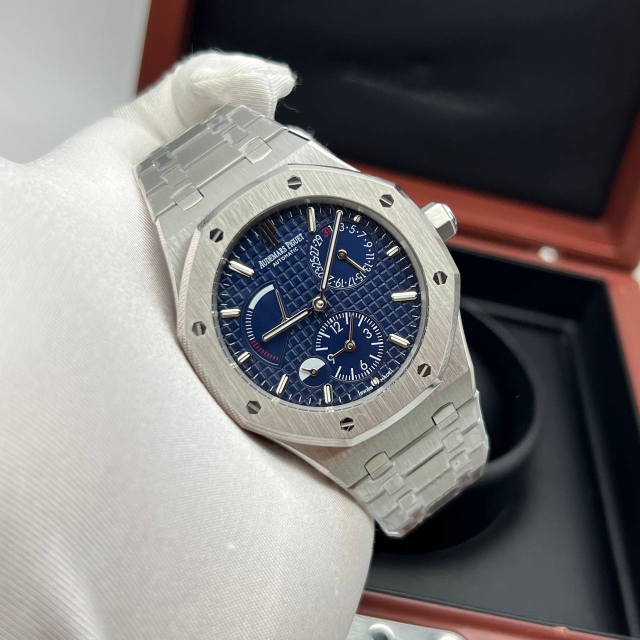 Часы Адемар Пиге - Роял Оак Дуал Тайм имеют следующие функции: Часы,минуты, секунды, дата, месяц, уровень заряда механизма.