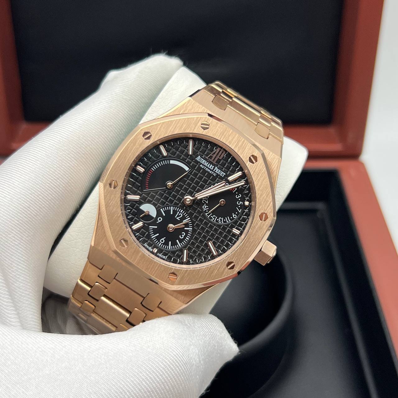 Часы Адемар Пиге - Роял Оак Дуал Тайм имеют следующие функции: Часы,минуты, секунды, дата, месяц, уровень заряда механизма.
