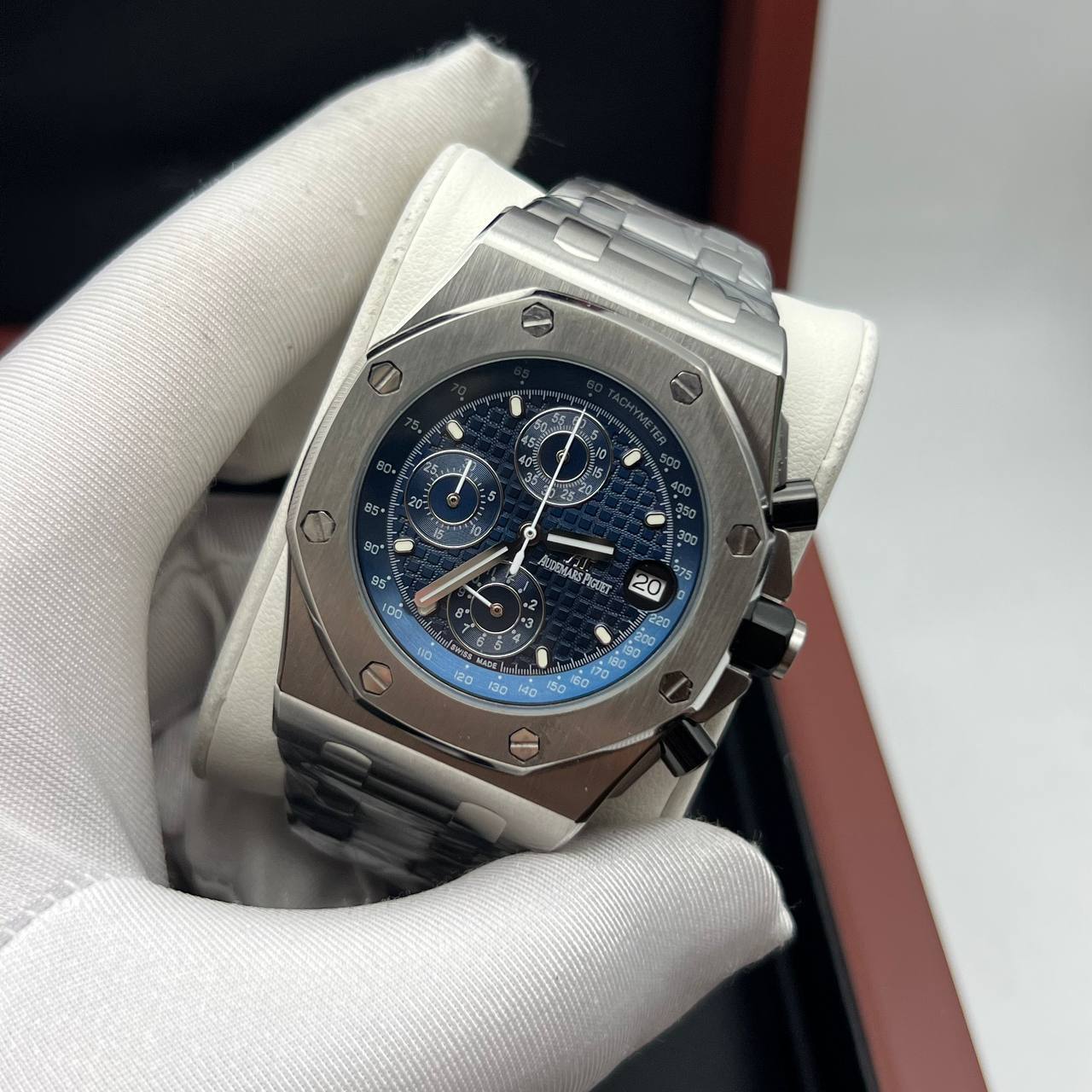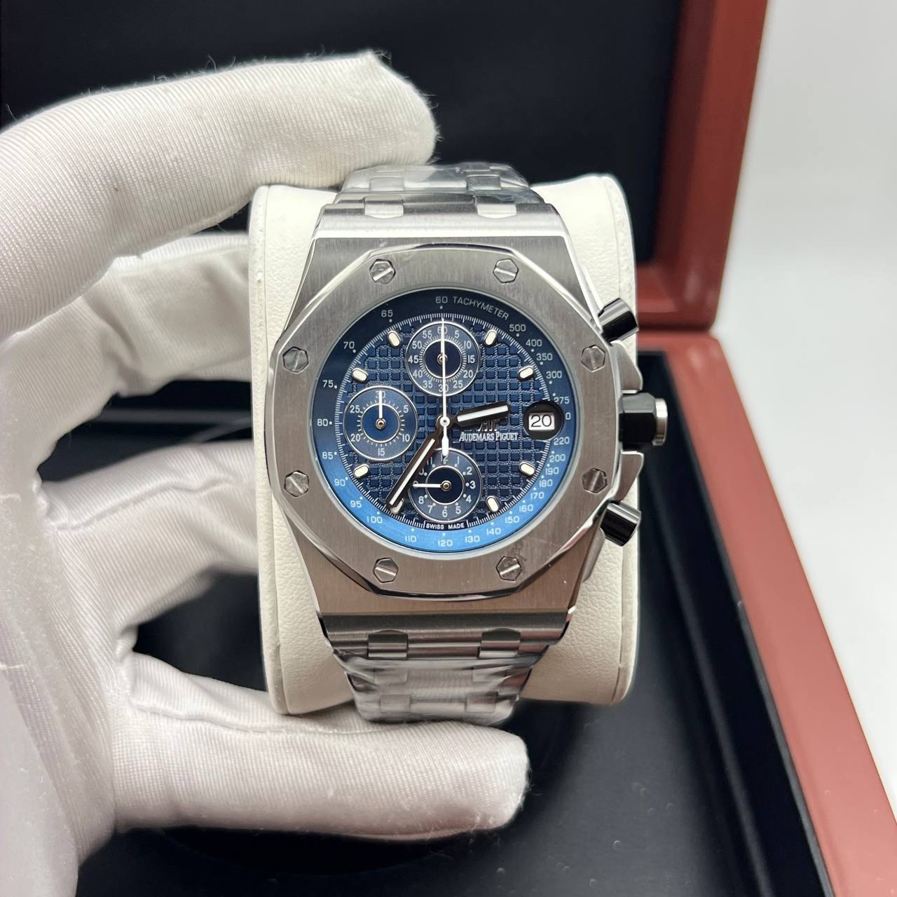 Реплика Адемар Пиге - Роял Оак Хронограф имеет следующие функции: Часы, минуты, секунды, дата, хронограф.