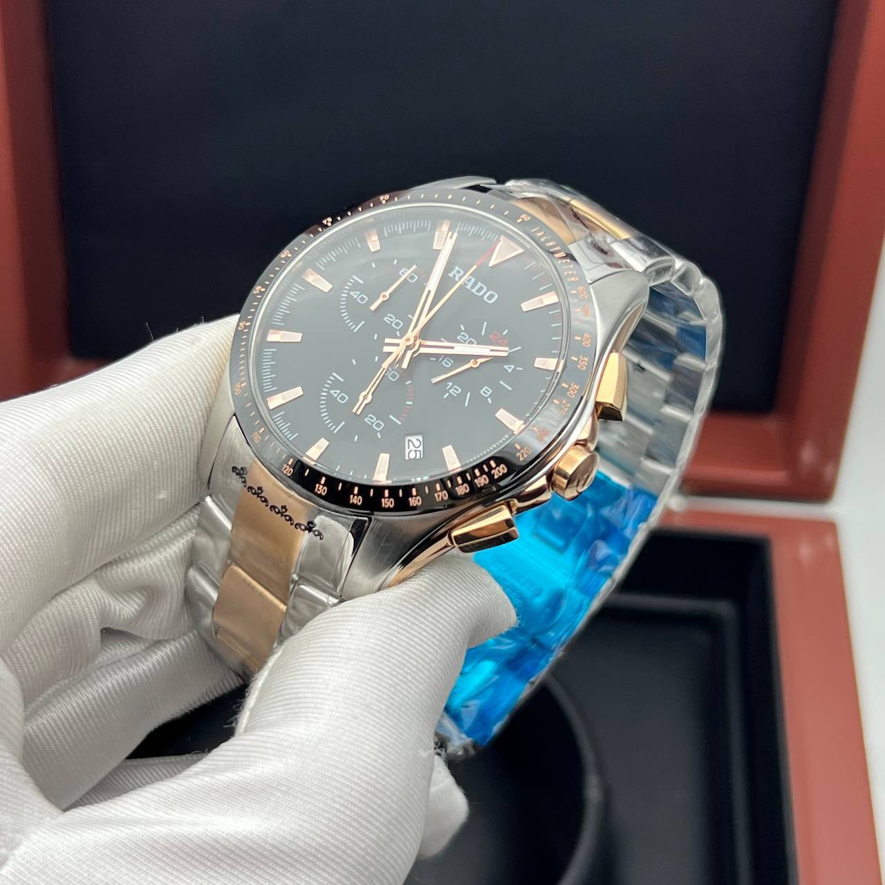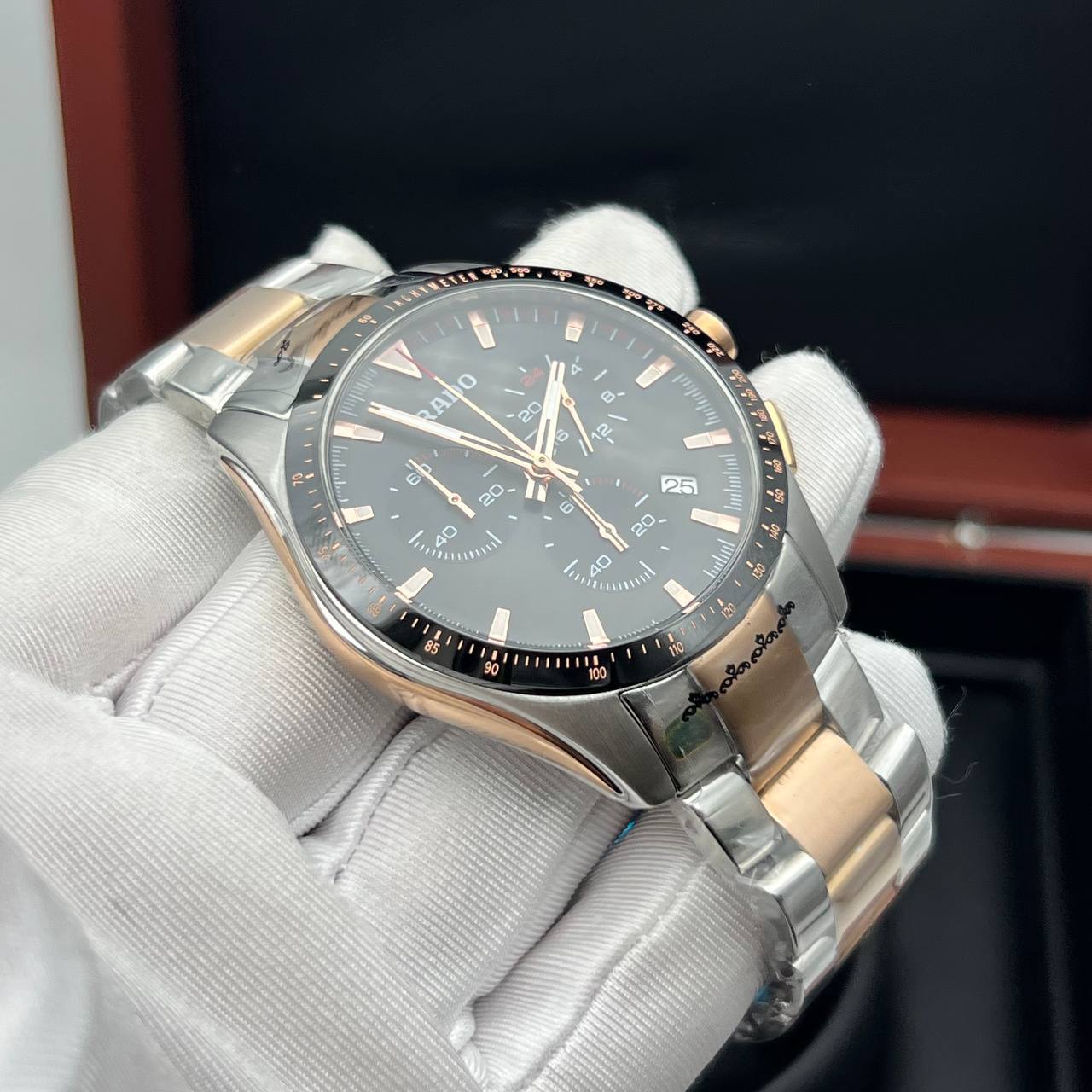 Реплика Rado показывает: Часы, минуты, секунды, дата, формат 24 часа, хронограф.