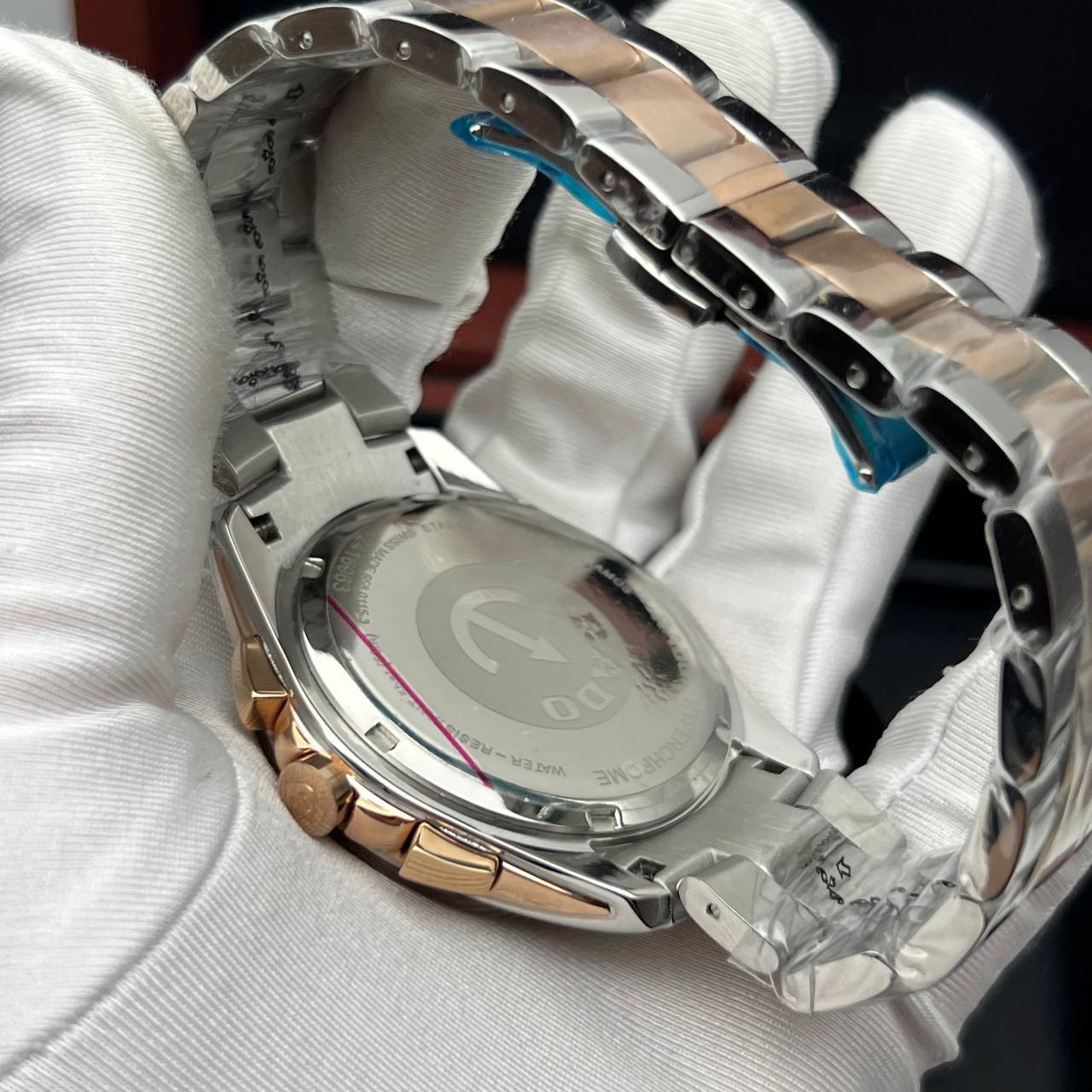 Полированная гипоаллергенная часовая сталь со вставками розового золота;