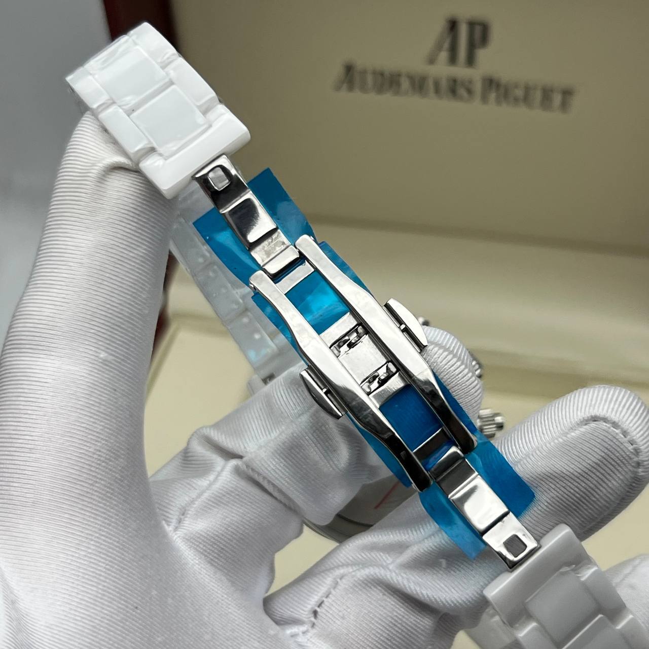 Матированная белая керамика с клипсовой застежкой «бабочка»;